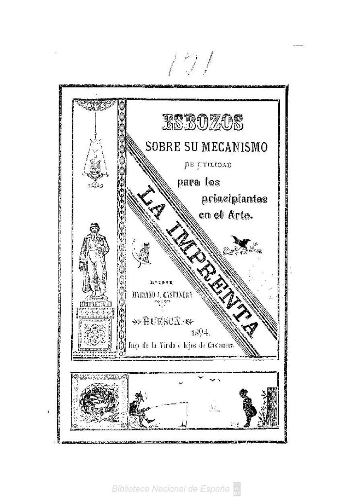 Manual La imprenta :esbozos sobre un mecanismo de utilidad para los principiantes en el arte.por M.J. CastaneraHuesca : Imp. de la Viuda e Hijos de Castanera 1894