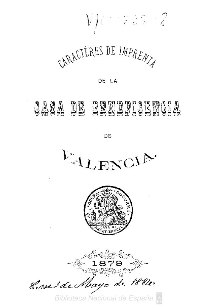 Carácteres de imprenta de la Casa de Beneficencia de ValenciaCasa de Beneficencia (Valencia) 1879