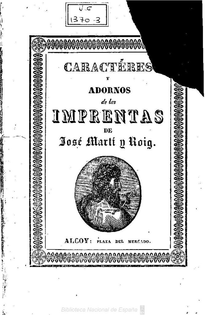 Muestras de los caracteres de la imprenta de Martí.Imprenta de José Martí. 1839